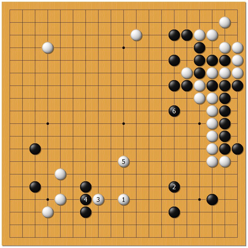 かと思えばこの様に、左下の壁を活かして白をガンガン攻めて優位を築く。